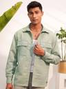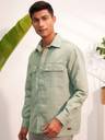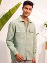 Locomotive Premium Men Light Olive Embossed Textured Utility Pocket Oversized Overshirt