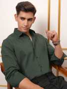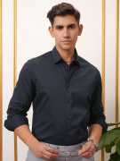 LOCOMOTIVE Men Solid Casual Black Shirt