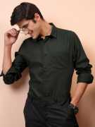 LOCOMOTIVE Men Solid Casual Green Shirt