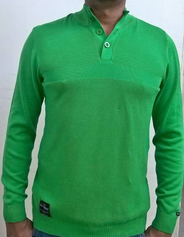 Men Solid Turtle Neck Light Green Sweater