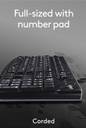 The full-sized keyboard features low-profile, whisper-quiet keys for a comfortable and familiar typing experience. It also includes a full-size number pad, making data entry and calculations a breeze. Its robust design is spill-resistant, built to withstand accidental liquid spills. The durable keys are rated for up to 10 million keystrokes, ensuring long-lasting performance.