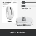Logitech MX Anywhere 3 / Magnetic Scrolling, Ergonomic, 4000DPI Sensor, Custom Buttons Wireless Ambidextrous Laser Mouse with Bluetooth (2.4GHz Wireless, Bluetooth, White, Grey)