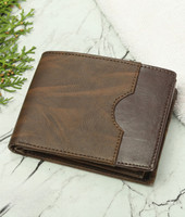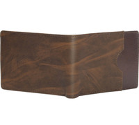 Courtesy of its rugged aesthetic, this men's wallet displays a two-tone finish with subtle distressing and natural crease marks. Moreover, the contrasting shades create a bold yet grounded look, while the curved pocket edge adds a refined detail to its vintage-inspired design.