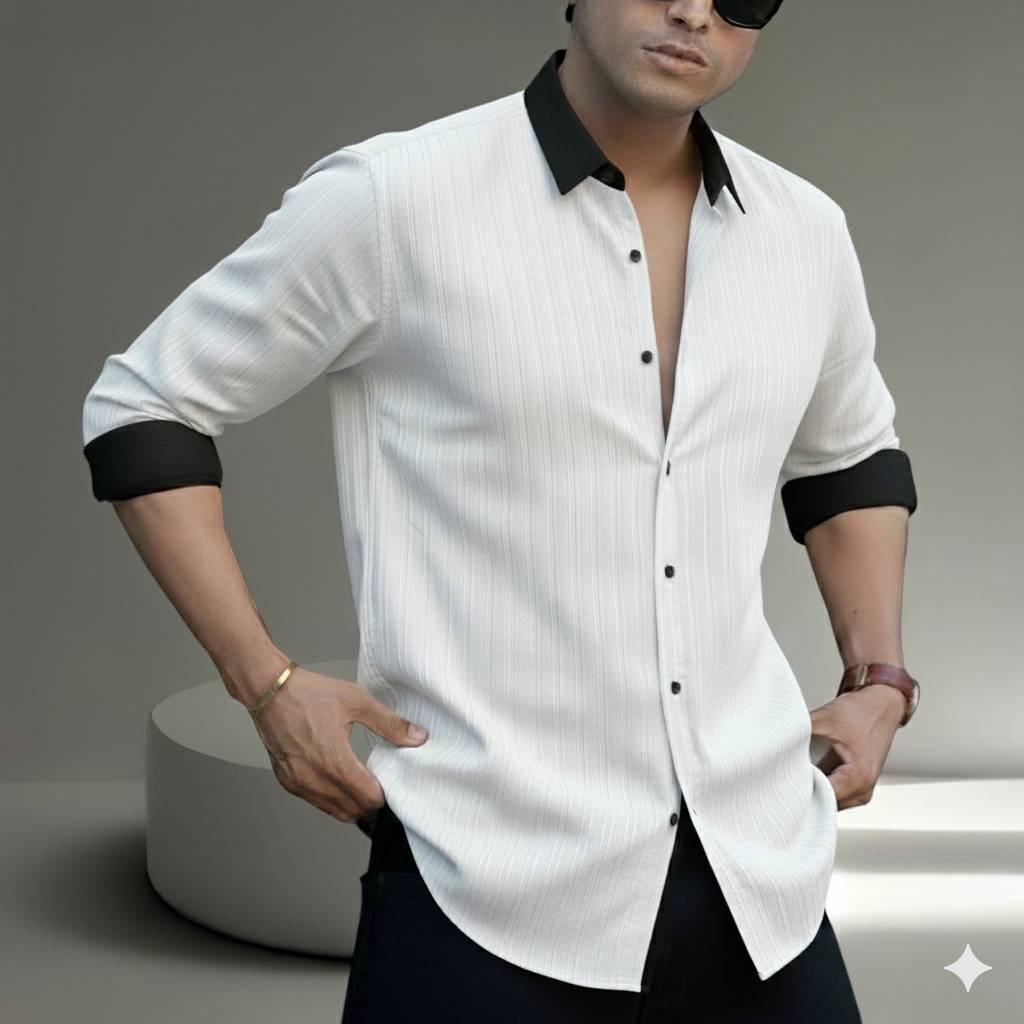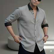 Elevate your fashion game with this premium asymmetrical designer shirt. Crafted with a modern twist, this shirt features a unique , high-quality fabric with subtle stripes, and bold contrast detailing on the collar and cuffs. Perfect for parties, casual outings, or special occasions, this shirt combines comfort with contemporary style.