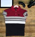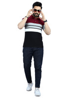 Lonaxa Striped Men Polo Neck Reversible Maroon T-Shirt