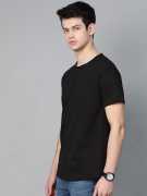 Men Solid Round Neck Pure Cotton Black T-Shirt