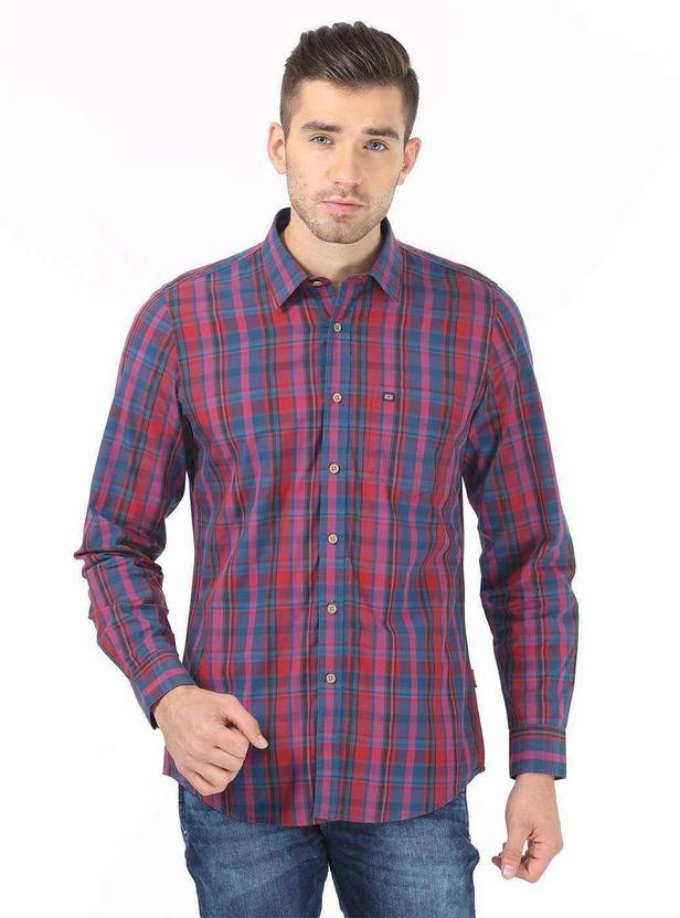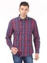 Men Slim Fit Checkered Curved Collar Casual Shirt