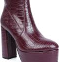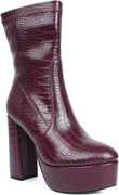 Burgundy Feral High Heeled Croc Pattern Ankle Boot