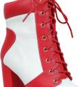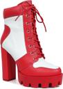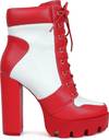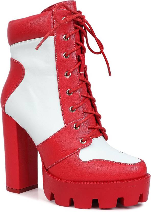 London Rag Red Moos Cow Printed Lace Up Block Heel Boots Boots For Women (Red, White , 3)