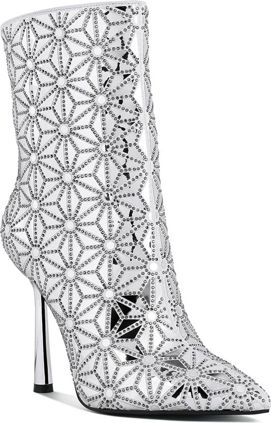 London Rag Silver Mirror Embellished High Ankle Boots Boots For Women (White , 3)