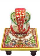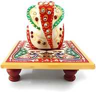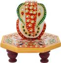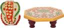 Earth joy Floral Painted Marble Asthcone Chowki With Ganesha Marble Marble Pooja Chowki (Multicolor, Pack of 1)