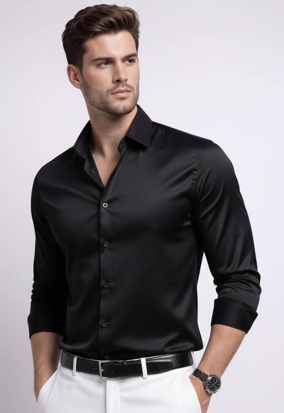 LookEver Men Solid Wedding Black Shirt