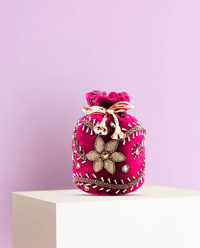 lookingfab (NO.7 )= WOMENS,FLOWER POTLI (PINK) Potli