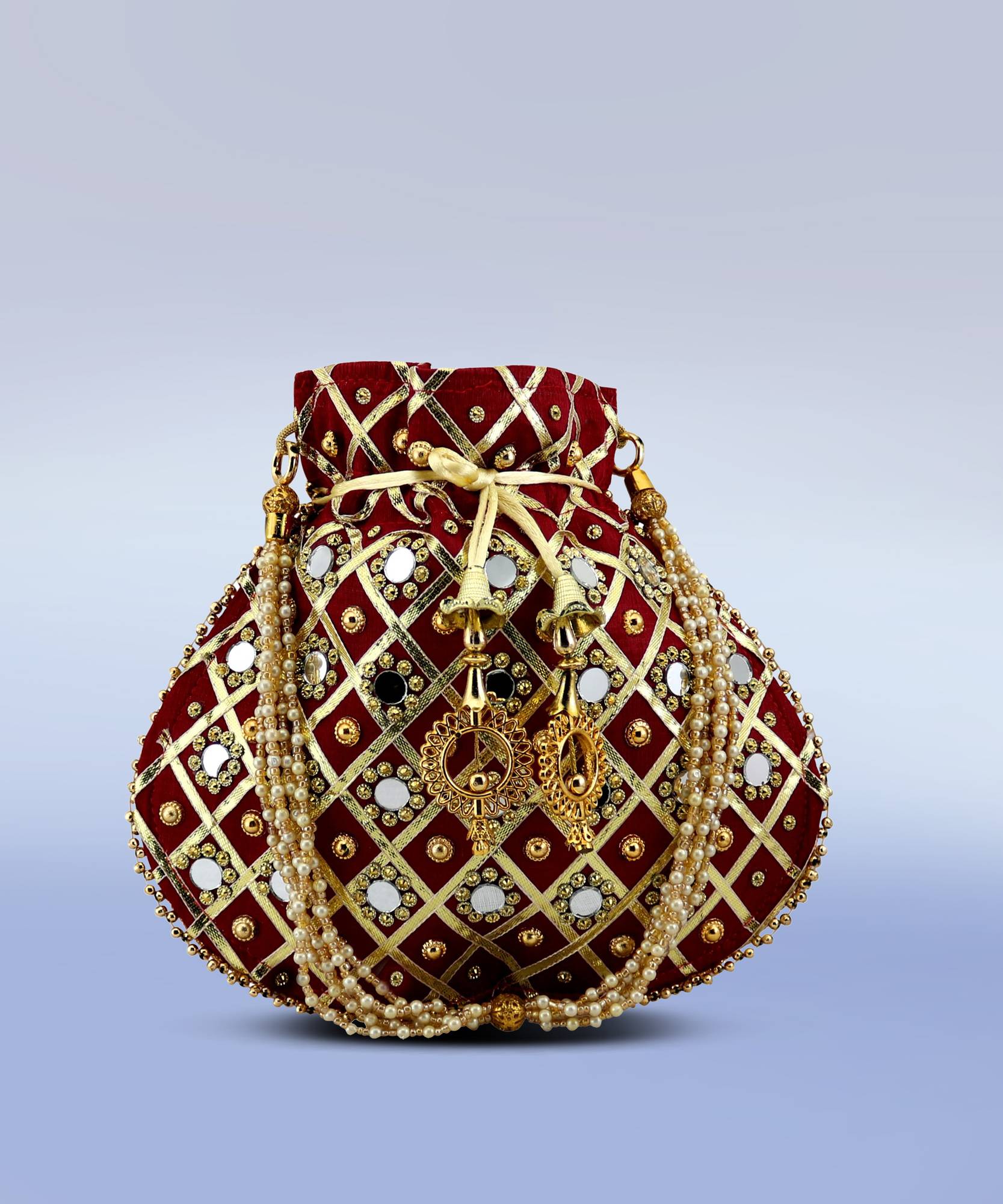 This a Traditional Rajasthani Khajoori which is designed by professional rajasthani artisan & can be used to give money and shagun gifts on weddings, birthdays, anniversary, Diwali, Raksha bandhan or any other auspicious occasions. The Potli bag features draw string closure adding a touch of elegance to the overall look. It is very attractive & is highly durable in nature.This Potli is hand made which upsurge its royal traditional look. And, it will go well with your attire.