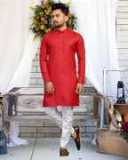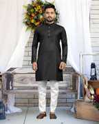 This matching set features a classic straight-cut kurta paired with a well-fitted pyjama, making it the perfect outfit for festivals, weddings, family functions, or casual traditional days. Designed with attention to detail, the kurta showcases a clean, elegant look suitable for all age groups, while the pyjama adds a comfortable and polished finish.