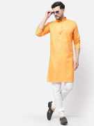 Upgrade your ethnic wardrobe with the stylish and comfortable LOOKMAKERS Men's Kurta Pyjama Set, crafted from a premium cotton blend fabric that feels soft on the skin and ensures breathability all day long. This matching set features a classic straight-cut kurta paired with a well-fitted pyjama, making it the perfect outfit for festivals, weddings, family functions, or casual traditional days. Designed with attention to detail, the kurta showcases a clean, elegant look suitable for all age groups, while the pyjama adds a comfortable and polished finish. Whether you're attending a special event or simply want to stand out in everyday ethnic wear, this LOOKMAKERS set offers the perfect blend of tradition and modern comfort.
