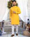 Upgrade your ethnic wardrobe with the stylish and comfortable LOOKMAKERS Men's Kurta Pyjama Set, crafted from a premium cotton blend fabric that feels soft on the skin and ensures breathability all day long. This matching set features a classic straight-cut kurta paired with a well-fitted pyjama, making it the perfect outfit for festivals, weddings, family functions, or casual traditional days. Designed with attention to detail, the kurta showcases a clean, elegant look suitable for all age groups, while the pyjama adds a comfortable and polished finish. Whether you're attending a special event or simply want to stand out in everyday ethnic wear, this LOOKMAKERS set offers the perfect blend of tradition and modern comfort.
