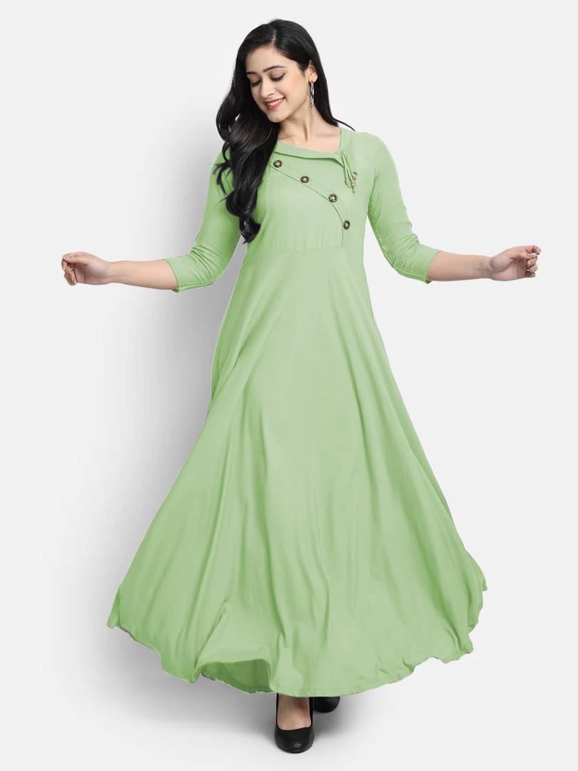 looknchoice Women Solid Flared Kurta (Light Green)