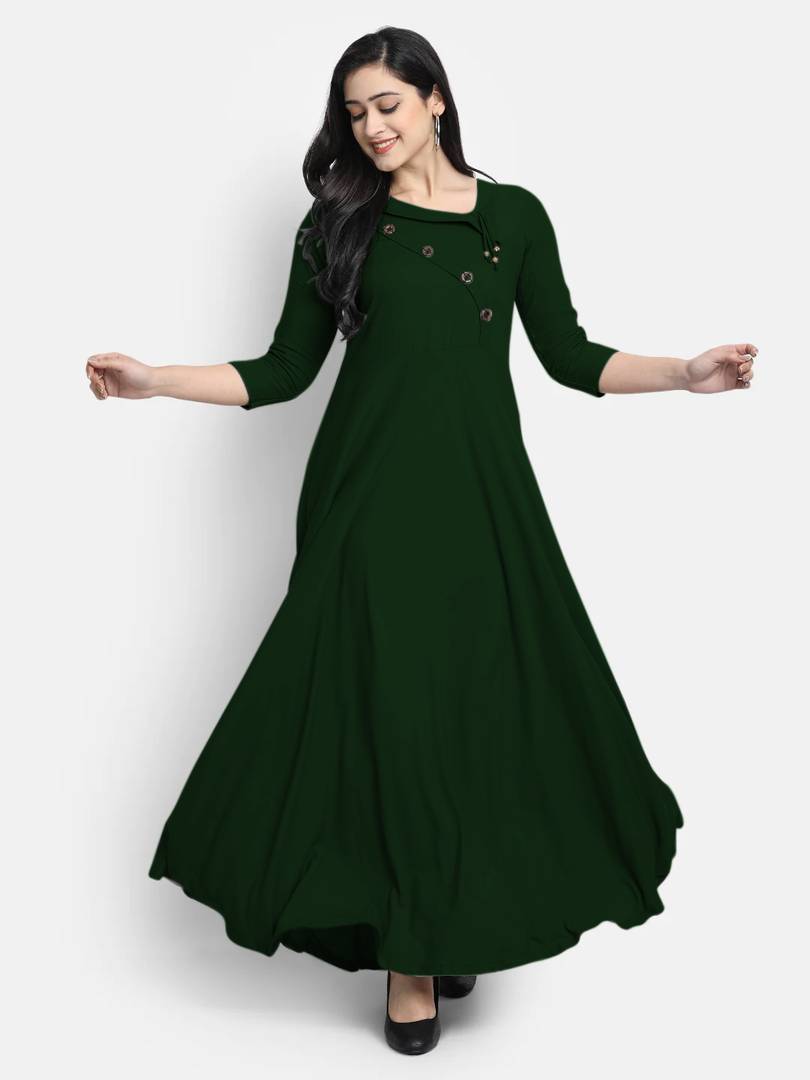 looknchoice Women Solid Flared Kurta (Green)