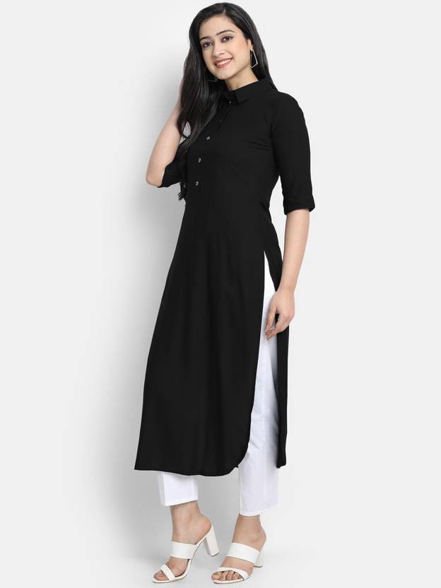 looknchoice Women Solid Straight Kurta (Black)
