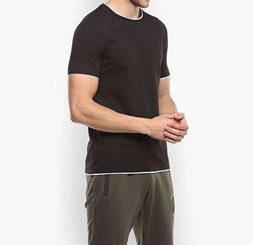 Men Solid Round Neck Cotton Blend Black T-Shirt