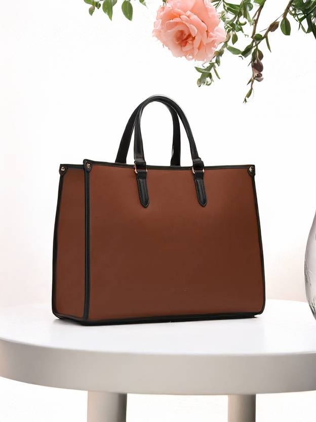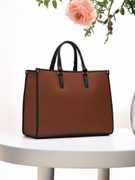 Introducing the Lookout Fashion Solid Tan Tote Bag, where functionality meets sophisticated charm. Crafted from premium synthetic leather in a versatile tan hue, this tote is designed for both elegance and practicality. The bag features a secure zipper closure and an embellished surface that adds a subtle flair to its solid pattern design. It's equipped with two sturdy handles complemented by an optional detachable sling strap, offering versatility for carrying it as either a handbag or shoulder bag depending on your need or style preference. Inside this chic accessory lies one main compartment flanked by one pocket specifically made to give unique places suitable for organizing essentials plus not just one but two mobile pouches.