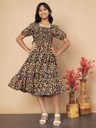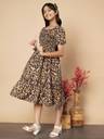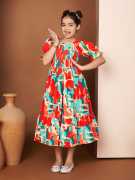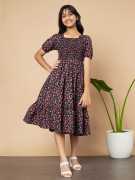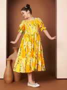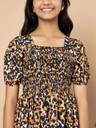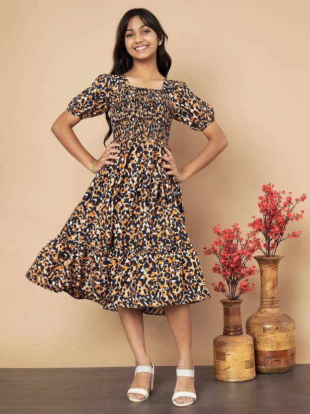 Give your little one a stylish and comfortable look with this charming midi dress. Designed with puff sleeves and a smocked bodice, this dress offers a perfect blend of elegance and ease. The all-over abstract print and tiered hem add a playful and vibrant touch, making it ideal for casual outings, family gatherings, or festive celebrations.