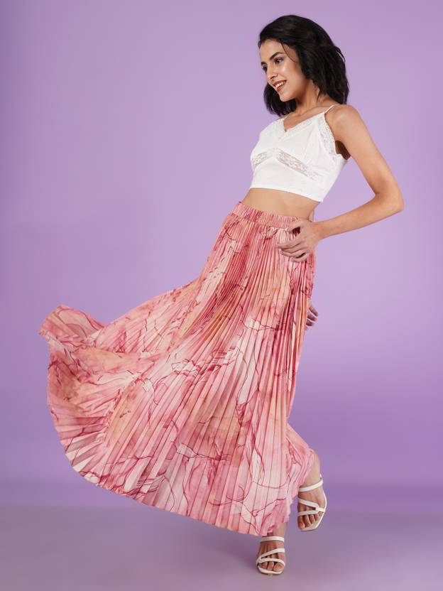 Enhance your wardrobe with our versatile A-line midi skirt, featuring a flattering pleated and flared design that adds a touch of elegance to any outfit. Crafted with a well-elasticized waistline for ultimate comfort, this skirt boasts a swing A-line hemline and a lining layer for added refinement.