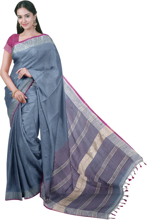 This exquisite collection from Loomfolks is exclusively for festive occasions. Crafted from pure linen. Easy to drape, this tradional outfit comforts you for your long hours spent with friends. This saree promises a mesmerising appearance and will win your heart at the very first glance. Pair it with silver jewellery and a shimmery clutch to look absolutely stunning. This saree measures 6.30 m, including a 0.80 m blouse piece. Grab It Now.