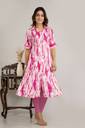 Loomista Women Printed Viscose Rayon A-line Kurta (Pink)