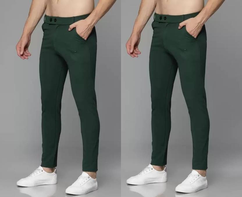 LOOMLUXE Pack of 2 Men Slim Fit Dark Green, Dark Green Lycra Blend Trousers