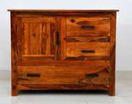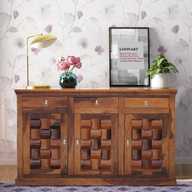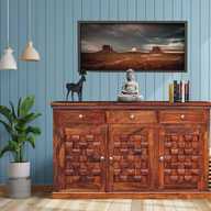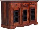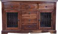 LOONART Solid Sheesham Wood Sideboard With Iron Designed Door For Living Room | Solid Wood Free Standing Cabinet (Finish Color - Honey Oak Finish, Door Type- Hinged, Pre-assembled)