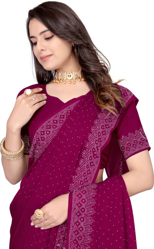 Elegance meets sophistication in this exquisite premium wine-colored georgette silk saree, a timeless masterpiece crafted for women who appreciate luxury and style. Delicately woven from the finest georgette silk fabric, this saree drapes effortlessly, enhancing your natural grace with every movement. The rich wine hue exudes opulence, making it perfect for any special occasion, be it a glamorous party, a cherished wedding celebration, or a joyful festival gathering. Its enchanting color palette adds a touch of allure and mystique to your ensemble, ensuring you stand out with unmatched poise and allure. Adorned with intricate detailing and subtle embellishments, this saree exudes an aura of sophistication and allure. The mesmerizing design, coupled with the luxurious feel of the silk, makes it a coveted addition to any discerning woman's wardrobe. Paired with an unstitched blouse piece, this saree offers endless possibilities for customization, allowing you to create a personalized look that reflects your individual style and personality. Whether you prefer a traditional blouse design or a contemporary twist, the versatility of this ensemble ensures you radiate confidence and grace with every wear.