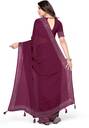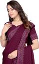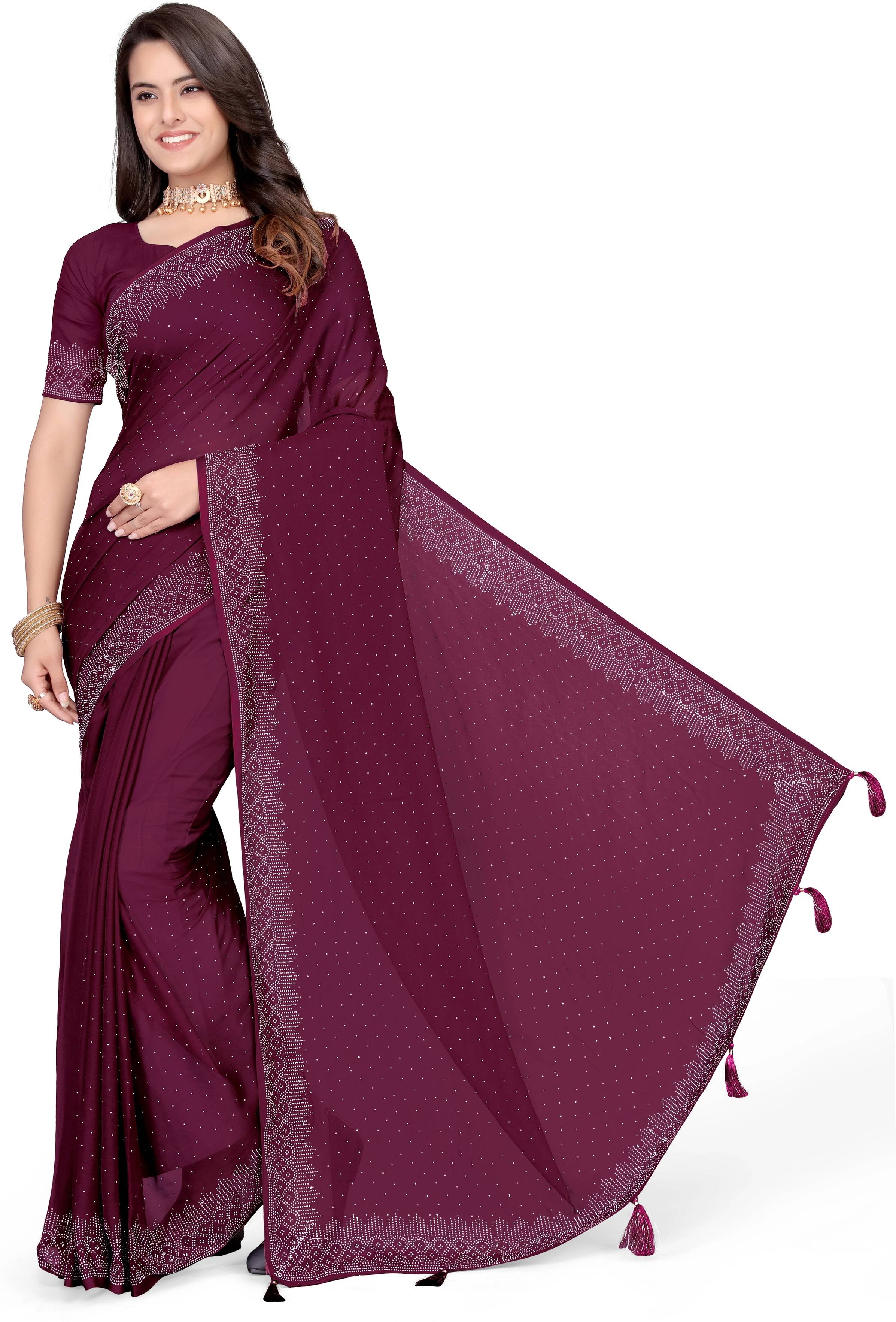 Elegance meets sophistication in this exquisite premium wine-colored georgette silk saree, a timeless masterpiece crafted for women who appreciate luxury and style. Delicately woven from the finest georgette silk fabric, this saree drapes effortlessly, enhancing your natural grace with every movement. The rich wine hue exudes opulence, making it perfect for any special occasion, be it a glamorous party, a cherished wedding celebration, or a joyful festival gathering. Its enchanting color palette adds a touch of allure and mystique to your ensemble, ensuring you stand out with unmatched poise and allure. Adorned with intricate detailing and subtle embellishments, this saree exudes an aura of sophistication and allure. The mesmerizing design, coupled with the luxurious feel of the silk, makes it a coveted addition to any discerning woman's wardrobe. Paired with an unstitched blouse piece, this saree offers endless possibilities for customization, allowing you to create a personalized look that reflects your individual style and personality. Whether you prefer a traditional blouse design or a contemporary twist, the versatility of this ensemble ensures you radiate confidence and grace with every wear.