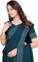 Crafted from lightweight georgette fabric, this saree drapes beautifully and moves gracefully with you. The georgette material ensures breathability and comfort, making it ideal for extended wear during parties and festive occasions. So, you can enjoy the fluid movement and soft feel of this saree against your skin, without feeling weighed down or uncomfortable.