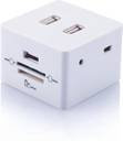 The Cube USB Hub & Card reader is a multifunction hub which provides easy-to-use, all-in-one file transfer solution. With this item you can connect several USB devices to your computer and use only one USB port of the PC. This item can also read the most common memory cards. It has got the following slots: 1. slot for: CF I/CF II, 2. slot for: SDHC/SD/MMC/MMCII/RS MMC/UltraII SD/Extreme SD/Extreme II SD/Mini SD, 3. slot for: T-Flash/Micro SD+M2, 4. slot for: MS/MS PRO/MS DUO PRO/MS DUO/MS MG/MS Pro MG/MS Duo MG, 5. slot for: XD Card 6. Three USB HUB port.