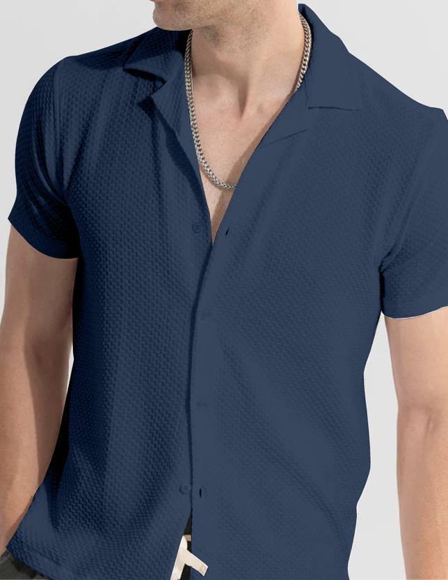 Men Regular Fit Self Design Lapel Collar Casual Shirt
