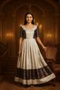 Loopy Floral Print Cotton Silk Stitched Anarkali Gown (Beige, Black)