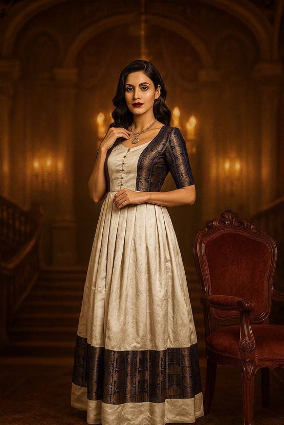 – Fabric & Feel: Light, Flowing & Comfortable • Georgette is a lightweight, crinkled-crepe fabric originally made with twisted yarns — it drapes fluidly and has a soft, slightly textured finish. • Because of this drapey nature, a georgette gown moves gracefully with your body — great for dancing, mingling, or long events without feeling heavy or restrictive. • It’s also breathable and comfortable — a big plus especially in warm or humid weather (which makes it practical if you’re in Surat or similar climates). – Versatile Look & Silhouette • Georgette lends itself to flowy, feminine silhouettes — whether it’s a fitted sheath, an A-line flare, or a full-length gown. That allows the gown to flatter different body types by gently flowing rather than clinging. • A “solid georgette” gown (i.e. without heavy prints) offers a clean, elegant canvas — so you can style it up or down depending on the occasion (from casual parties to semi-formal dinners to festive events). – Easy to Style & Work with Embellishments • Georgette works beautifully with embellishments — embroidery, sequins, beads, etc. Designers often choose it for party-wear & festive gowns because the fabric can hold the work nicely without losing its flowing character. • Because of its texture, colors — bold or pastel — also come out nicely on georgette; dyes hold well and the resulting finish looks elegant. – Practical & Easy to Wear for Indian Context • Compared to heavy fabrics (like brocade or certain silks), a georgette gown is far more comfortable for long wear — especially in warm, humid climates. That means parties, dinners or even weddings won’t feel cumbersome. • It’s also relatively low-maintenance: georgette doesn’t crease heavily, and faux or synthetic georgette tends to be more durable and easier to care for than delicate fabrics.