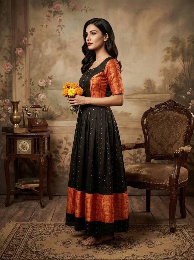 – Fabric & Feel: Light, Flowing & Comfortable • Georgette is a lightweight, crinkled-crepe fabric originally made with twisted yarns — it drapes fluidly and has a soft, slightly textured finish. • Because of this drapey nature, a georgette gown moves gracefully with your body — great for dancing, mingling, or long events without feeling heavy or restrictive. • It’s also breathable and comfortable — a big plus especially in warm or humid weather (which makes it practical if you’re in Surat or similar climates). – Versatile Look & Silhouette • Georgette lends itself to flowy, feminine silhouettes — whether it’s a fitted sheath, an A-line flare, or a full-length gown. That allows the gown to flatter different body types by gently flowing rather than clinging. • A “solid georgette” gown (i.e. without heavy prints) offers a clean, elegant canvas — so you can style it up or down depending on the occasion (from casual parties to semi-formal dinners to festive events). – Easy to Style & Work with Embellishments • Georgette works beautifully with embellishments — embroidery, sequins, beads, etc. Designers often choose it for party-wear & festive gowns because the fabric can hold the work nicely without losing its flowing character. • Because of its texture, colors — bold or pastel — also come out nicely on georgette; dyes hold well and the resulting finish looks elegant. – Practical & Easy to Wear for Indian Context • Compared to heavy fabrics (like brocade or certain silks), a georgette gown is far more comfortable for long wear — especially in warm, humid climates. That means parties, dinners or even weddings won’t feel cumbersome. • It’s also relatively low-maintenance: georgette doesn’t crease heavily, and faux or synthetic georgette tends to be more durable and easier to care for than delicate fabrics.
