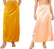 Lootnixx SATIN_SP_MUSTERD_YELLOW+PEACH Pure Satin Petticoat Combo For women M Pure Satin Petticoat (M)