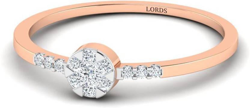 Precious Gold Diamond Ring Made in 0.79 grams 18kt BIS Hallmarked Gold and 0.12 IJ-SI Diamonds. Lords Jewels is delivering trust since 1983 and delivers each piece of Jewellery with Lifetime Buy back Gurantee.
