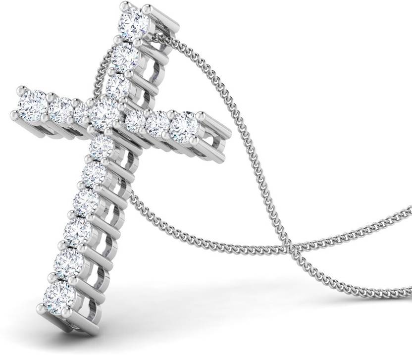 LORDS JEWELS Diamond Cross Pendant 14kt Diamond White Gold Pendant