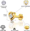 Precious Diamond Nose Pin Made in 0.472 grams (18Kt) BIS Hallmarked Gold and 0.04 IJ-SI Diamonds. Lords Jewels is delivering trust since 1983 and delivers each piece of Jewellery