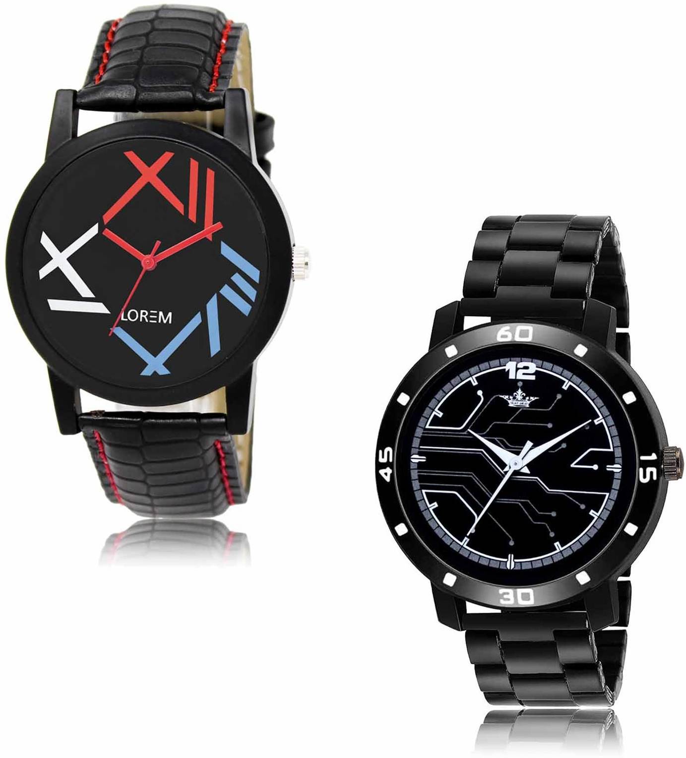 LOREM watches are Also known as its Quality and Precise Finishing. This New LOREM OE-LR12 & LR113 watch Comes with Round shape Multicolor Dial with high premium Black Faux Leather & Metal straps. This watch is highly recommended for Men & Boys. Dial of this watch is protected by a mineral glass and has a Heavy Faux Leather & Metal strap for added comfort with Precious Finishing. The time is controlled by a single crown on the side of the watch and This stunning watch is working on a quartz mechanism. This watch is highly used for Casual, Partywear and Gifting Purposes. Explore our products by clicking on our brand name.
