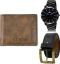 LOREM Belt, Wallet & Watch Combo (Brown, Black, Black)