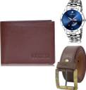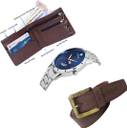WATCH::-This Analog Watches comes with a Designer Look dial and stainless steel back. The dial is protected by a mineral glass and has a Designer strap for added comfort with Precious Finishing. The time is controlled by a single crown on the side of the watch. This watch is highly used for Sport plus Casual Wear. This watch is also highly recommended for new generation of india. This watches can be used for wedding, partywear, casual etc.WALLET::-2 ATM Cards Slot | Additional Zipper Currency Slot | 2 Secret (Hidden) Pockets |1 Coin Box | Brand Logo embossed | Light Weight | Smooth Finish | Trendy |Latest Design | Leather Wallet For Men The few things you carry, carry well! Great for gift. Enjoy your life and Just put a bow on it and you're ready to give to your special one. Our wallet not only offers security, it's also very functional. It features a quick access to IDs, driver license, ATM debit cards / credit cards, and has two long top slots for money, receipts, or tickets. The few things you carry, carry well!BELT::-Presenting the New LOREM Belt collection for Men, We create value for money with latest trends, New Large range Best Qulity Zinc material Designer Buckle, Light Weight, Long-Lasting with Stitch Synthetic Leather Material. This High quality product and Synthetic leather promises you durability and light weight. One size fits all For waist 30 inches to 44 inches.
