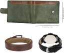 LOREM Belt, Wallet & Watch Combo (Green, Brown, Black)