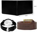 WATCH::-This Analog Watches comes with a Designer Look dial and stainless steel back. The dial is protected by a mineral glass and has a Designer strap for added comfort with Precious Finishing. The time is controlled by a single crown on the side of the watch. This watch is highly used for Sport plus Casual Wear. This watch is also highly recommended for new generation of india. This watches can be used for wedding, partywear, casual etc.WALLET::-2 ATM Cards Slot | Additional Zipper Currency Slot | 2 Secret (Hidden) Pockets |1 Coin Box | Brand Logo embossed | Light Weight | Smooth Finish | Trendy |Latest Design | Leather Wallet For Men The few things you carry, carry well! Great for gift. Enjoy your life and Just put a bow on it and you're ready to give to your special one. Our wallet not only offers security, it's also very functional. It features a quick access to IDs, driver license, ATM debit cards / credit cards, and has two long top slots for money, receipts, or tickets. The few things you carry, carry well!BELT::-Presenting the New LOREM Belt collection for Men, We create value for money with latest trends, New Large range Best Qulity Zinc material Designer Buckle, Light Weight, Long-Lasting with Stitch Synthetic Leather Material. This High quality product and Synthetic leather promises you durability and light weight. One size fits all For waist 30 inches to 44 inches.
