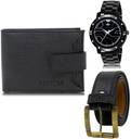 WATCH::-This Analog Watches comes with a Designer Look dial and stainless steel back. The dial is protected by a mineral glass and has a Designer strap for added comfort with Precious Finishing. The time is controlled by a single crown on the side of the watch. This watch is highly used for Sport plus Casual Wear. This watch is also highly recommended for new generation of india. This watches can be used for wedding, partywear, casual etc.WALLET::-7 ATM Cards Slot | 2 Cash Compartments | 2 Secret (Hidden) Pockets |1 Button Coin Box |Removable ATM Card Holder | Brand Logo embossed | Light Weight | Smooth Finish | Trendy |Latest Design | Leather Wallet For Men The few things you carry, carry well! Great for gift. Enjoy your life and Just put a bow on it and you're ready to give to your special one. Our wallet not only offers security, it's also very functional. It features a quick access to IDs, driver license, ATM debit cards / credit cards, and has two long top slots for money, receipts, or tickets. The few things you carry, carry well!BELT::-Presenting the New LOREM Belt collection for Men, We create value for money with latest trends, New Large range Best Qulity Zinc material Designer Buckle, Light Weight, Long-Lasting with Stitch Synthetic Leather Material. This High quality product and Synthetic leather promises you durability and light weight. One size fits all For waist 30 inches to 44 inches.